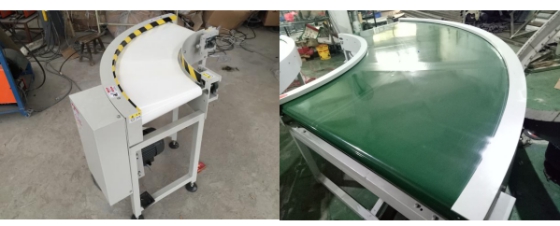 轉(zhuǎn)彎皮帶機(jī)功能特點(diǎn):本設(shè)備適用于各種流水作業(yè)的生產(chǎn)廠家,中小型物品的物流輸送,動力系統(tǒng)采用變頻調(diào)速系統(tǒng),性能穩(wěn)定、安全可靠、操作簡單。線速度一般在三十米每分鐘。